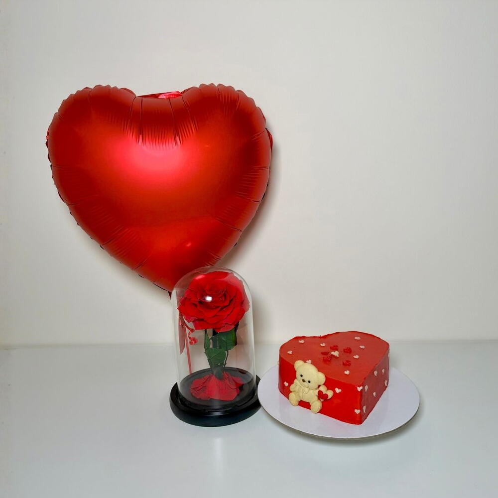 Red rose - 1 pce cake - 600 pce ballon en forme de cœur rouge - 1 pce