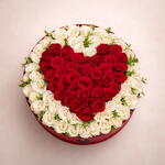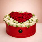 Boîte rouge romantique - 41 roses rouges 40 roses blanches
