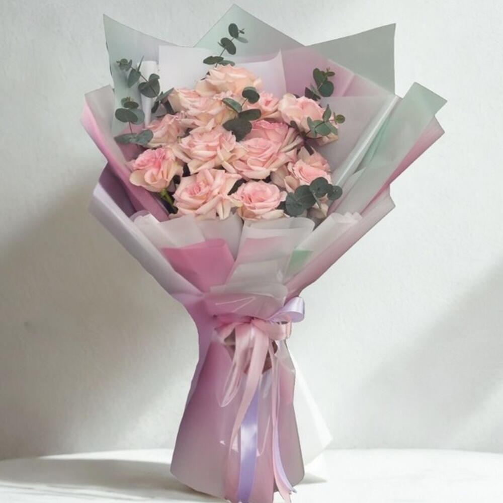 Eucalyptus - 4 pce wrapping paper - 3 pce pink roses - 15 pce