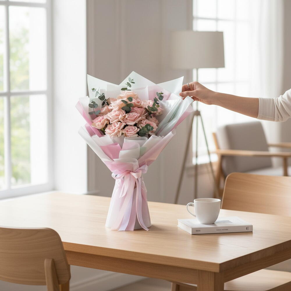 Rayonnez d'élégance pure et de charme intemporel avec ce magnifique bouquet mono, composé de 15 roses roses à la floraison impeccable. Chaque rose est cueillie à la main et délicatement disposée pour créer une composition qui évoque l'amour éternel et la grâce raffinée. Idéal pour les anniversaires, les fêtes ou tout simplement pour exprimer vos sentiments les plus sincères.