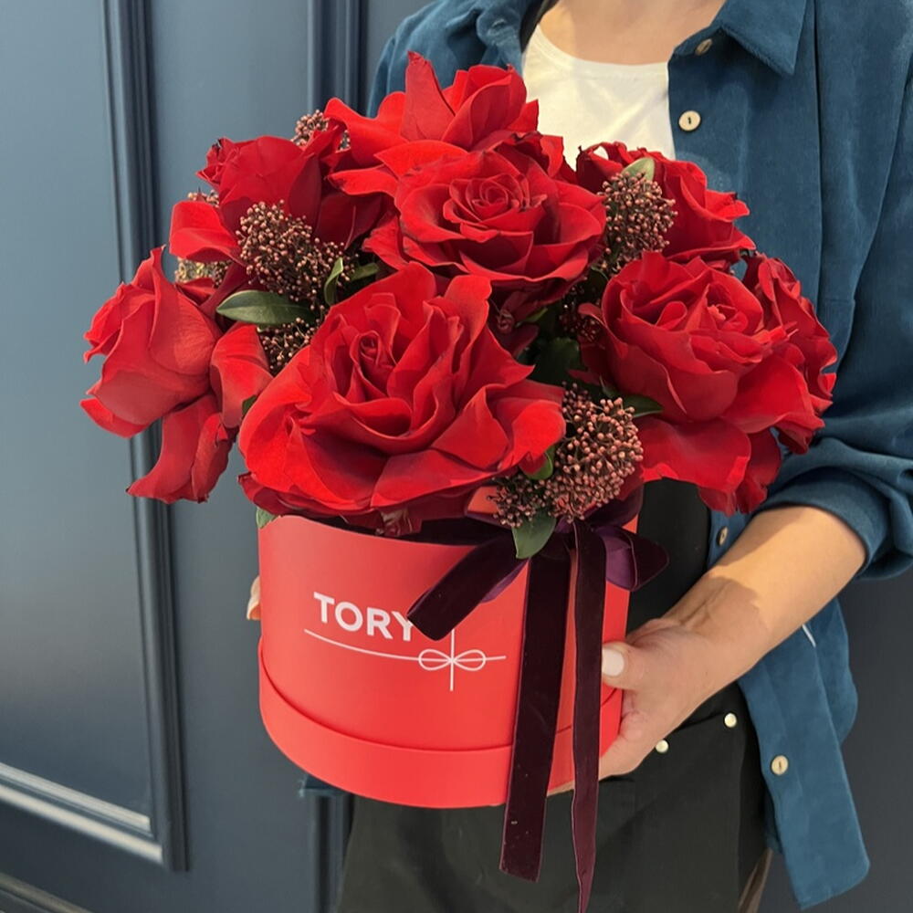 Box - 1 pce rose rouge - 13 pce mélange de skimmia - 2 pce