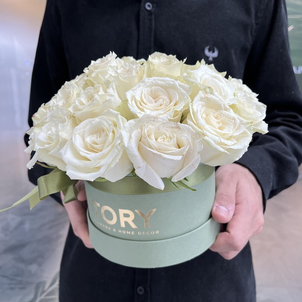 Composition: Rose white - 27, box - 1 Sizes: WIDTH - 20CM; HEIGHT - 20CM; LENGTH - 20CM; (including packaging) Размер: 20 x 20 x 20 см