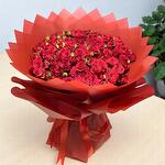 Ribbon - 1 pce Wrapping - 7 pce red roses - 15 pce roses spray rouges - 26 pce