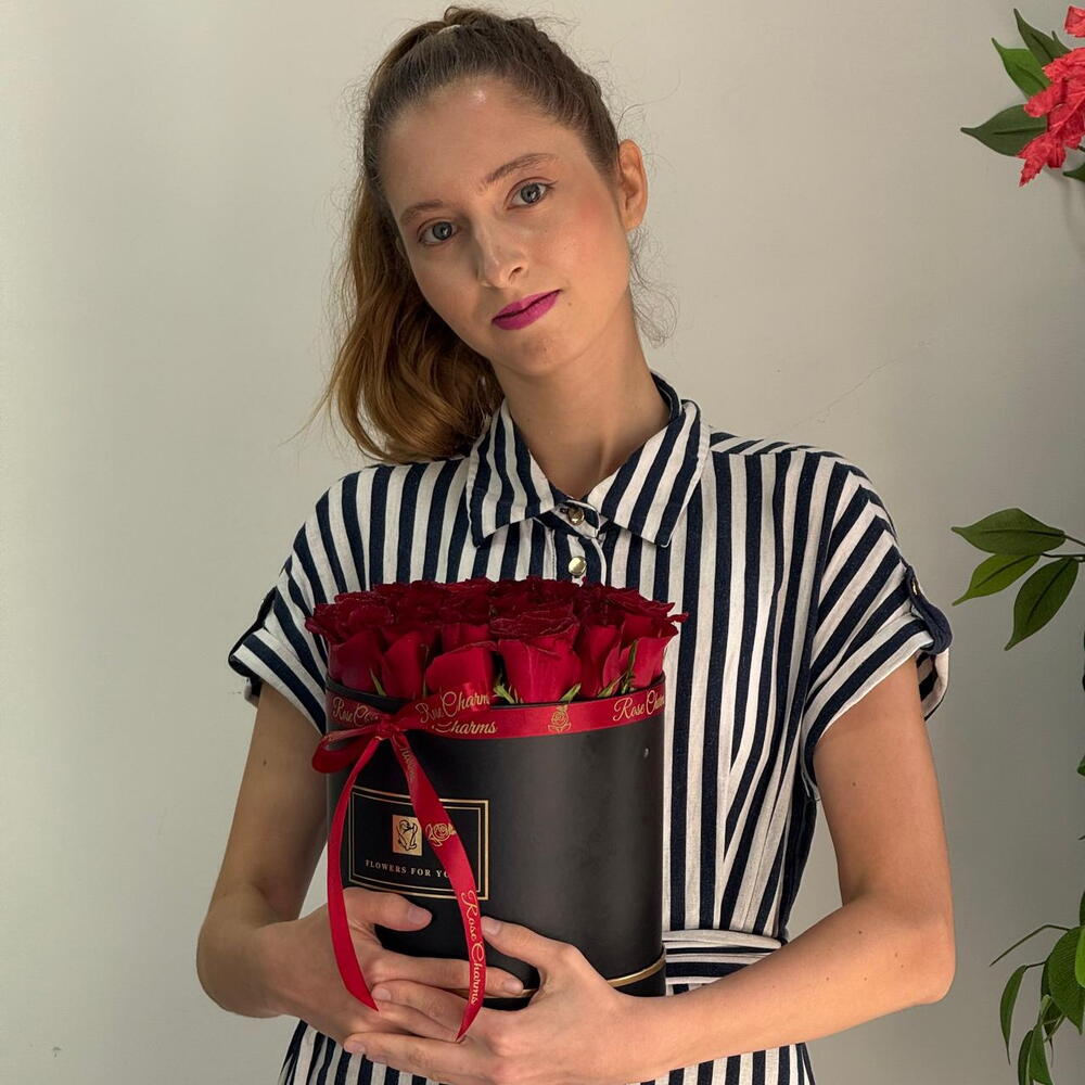 21 roses rouges en boîte noire | Livraison de fleurs de luxe à Dubaï