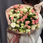 Rosy Haze est un bouquet doux et élégant qui exprime la beauté subtile et l'émotion discrète. Composé de 10 roses blanches immaculées, 10 roses spray blanches et 10 roses spray d'un rose pâle délicat, cet arrangement allie pureté et romantisme délicat. Le mélange de blancs crémeux et de tons rosés doux crée un aspect onirique et éthéré — parfait pour exprimer l'amour, la gratitude ou une affection paisible.