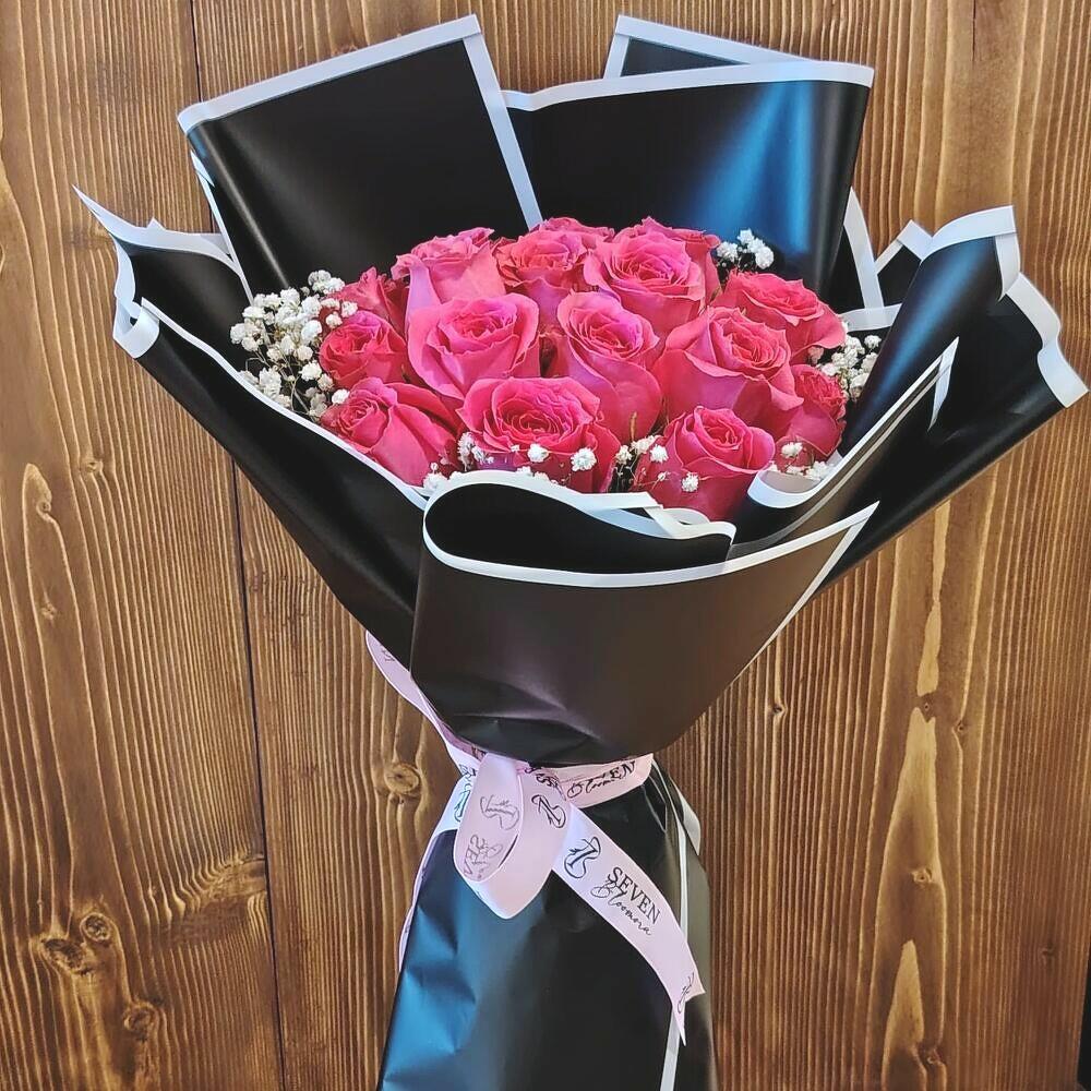 Ce bouquet élégant de roses d'un rose vif est un symbole d'admiration, de gratitude et d'émotions joyeuses. Enveloppé dans un papier noir mat élégant avec un ruban rose pâle, il dégage à la fois un chic moderne et une romance intemporelle. Parfait pour les anniversaires, les célébrations ou simplement comme une surprise sincère, ce bouquet remontera instantanément le moral de son destinataire. Pour garder les fleurs fraîches plus longtemps, coupez les tiges en biais tous les deux jours, changez régulièrement l'eau et évitez de les placer en plein soleil ou près de sources de chaleur.