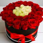 Ruban rouge - 1 pce boîte ronde noire - 1 pce red roses - 20 pce roses blanches - 10 pce