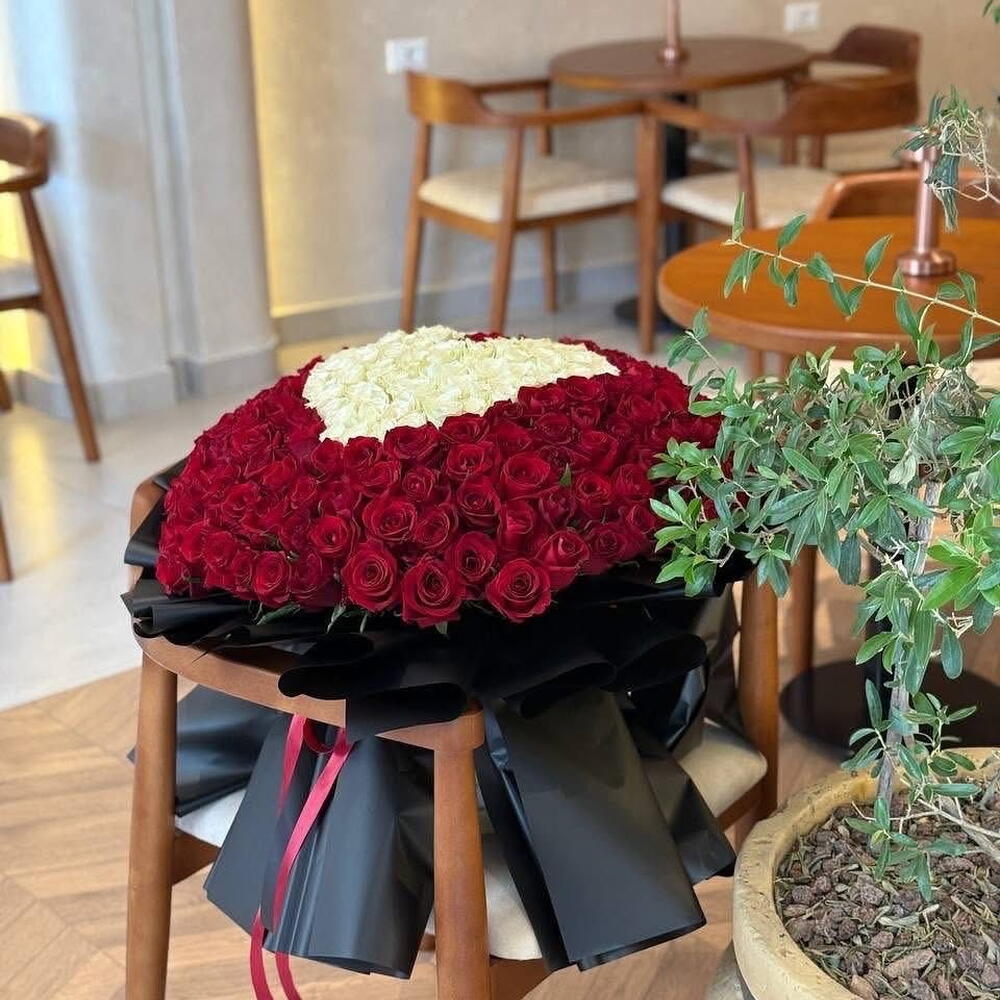 Bouquet rouge avec cœur blanc