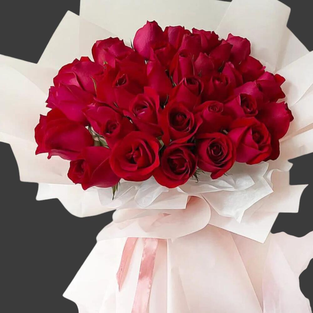 Un magnifique bouquet de roses rouges passionnées Parfait pour que la personne qui compte pour vous se sente vraiment chérie
