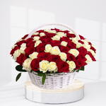 Cet arrangement captivant se compose d'un mélange chaleureux de 31 roses blanches et 30 roses rouges, toutes méticuleusement disposées dans un panier magnifique, sûr d'enchanter quiconque aura la chance de recevoir ce cadeau au nombre précis. Nos fleurs sont choisies avec un soin méticuleux pour leur beauté et leur fraîcheur, créant une présentation attrayante de couleurs et de vie, en faisant un choix parfait pour toute occasion.