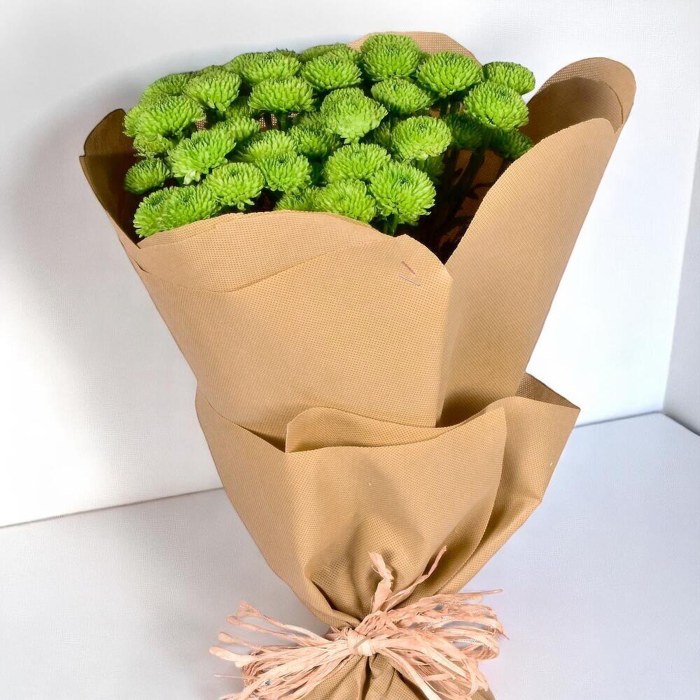 Bouquet Charme Émeraude de chrysanthèmes verts | Arrangement floral vert frais | Idée cadeau éco-chic