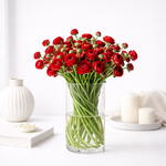 20 Red Ranunculus Clear Glass Vase – 12x20cms