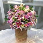Un bouquet à couper le souffle qui allie l'élégance des lys roses, des roses pastel délicates et des touches de lilas raffinées, le tout magnifiquement disposé dans une boîte ronde luxueuse. Cette œuvre florale rayonne de charme et de sophistication, ce qui la rend parfaite pour toute célébration ou occasion spéciale. Le mélange vibrant de couleurs crée un équilibre harmonieux, tandis que les fleurs de haute qualité garantissent une beauté durable. La boîte ornée de détails dorés ajoute une touche d'opulence, transformant cet arrangement en un cadeau inoubliable. Qu'il s'agisse d'exprimer l'amour, la gratitude ou l'admiration, ce bouquet époustouflant laissera une impression durable. Apportez joie et élégance à n'importe quel cadre avec ce design floral captivant.