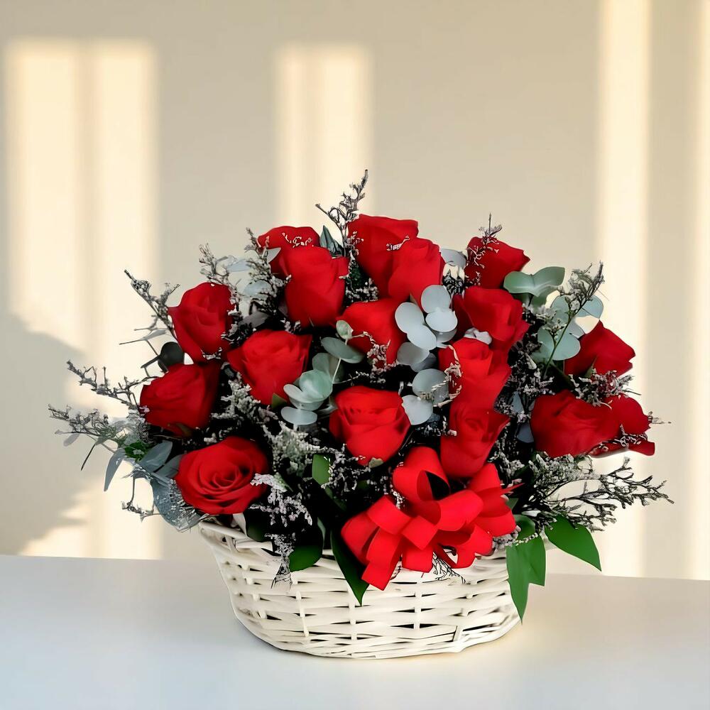 Ribbon - 1 pce Basket - 1 pce red roses - 51 pce