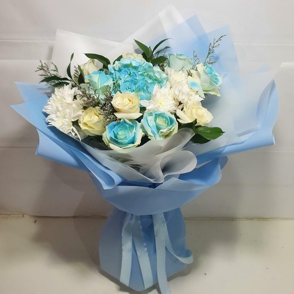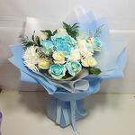 Hydrangea - 1 pce Chrysanthemum - 2 pce roses - 10 pce