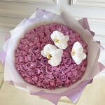 Nuances D'Amour _ Bouquet De 99 Roses Violettes Luxueuses Avec Une Orchidée Blanche Pour Un Anniversaire De Mariage Ou Un Anniversaire
