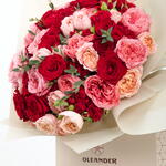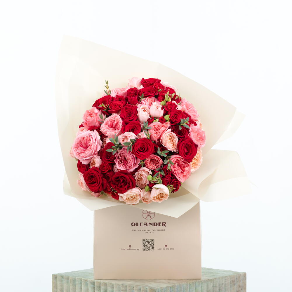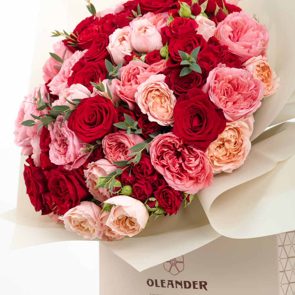 A radiant bouquet of shimmering roses, rich Freedom roses, and delicate Julieta spray roses—elegantly crafted to express warmth, romance, and refined luxury.