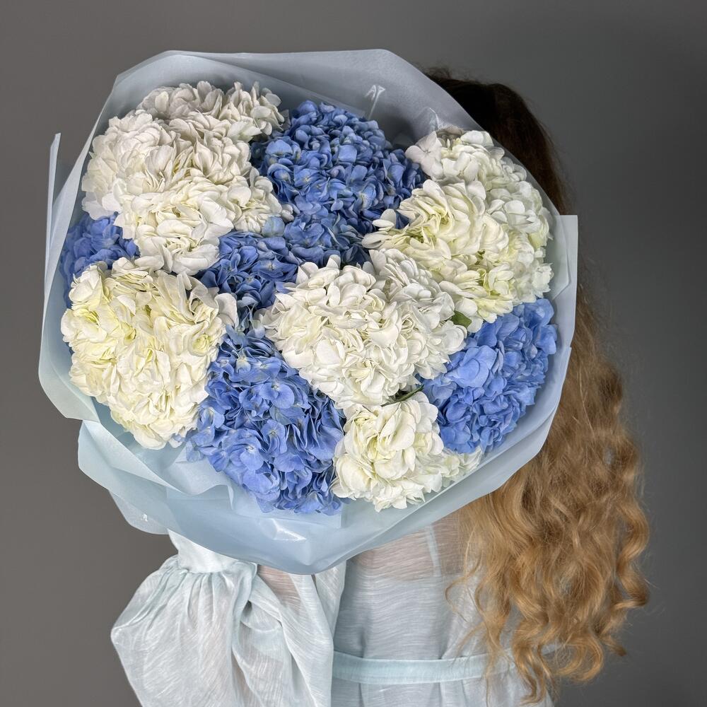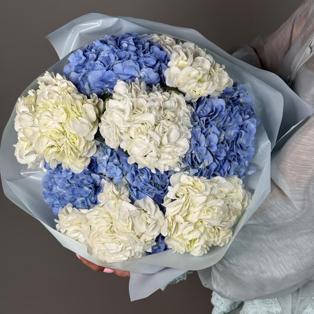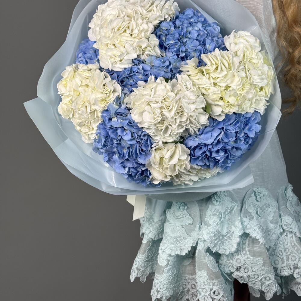 Sky Whisper: Bouquet extra-large de 10 hortensias bleus et blancs