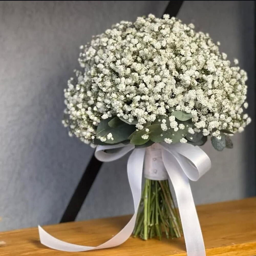 Un beau bouquet de mariée composé uniquement de gypsophiles.