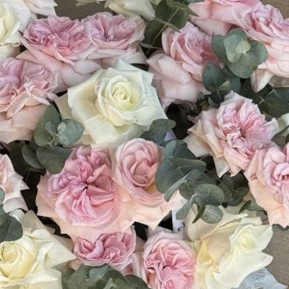 Eucalyptus - 10 pce roses roses ohara - 20 pce roses blanches françaises - 10 pce