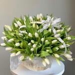 Découvrez notre somptueux panier de tulipes, une superbe composition comprenant 99 tulipes blanches immaculées. Chaque tulipe, soigneusement sélectionnée pour sa pureté et son élégance, est un symbole de grâce et de renouveau.