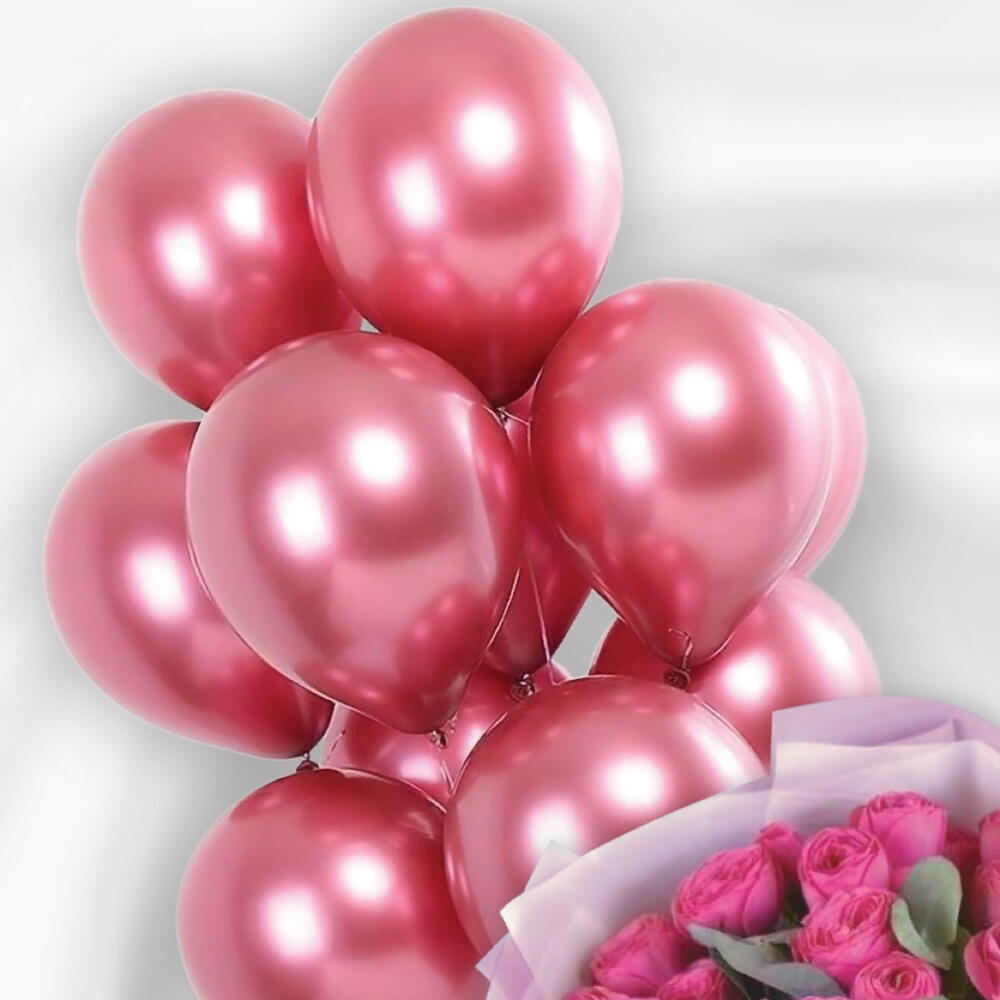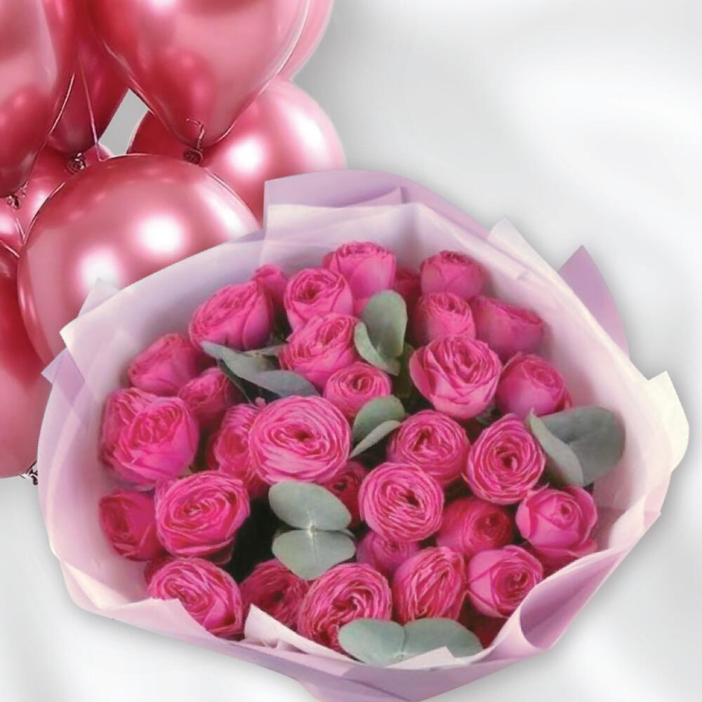 conception d'emballage - 5 pce ribbon satin - 1 pce ballons chromés - 11 pce rose pivoine roses - 15 pce