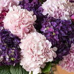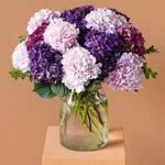 vase en verre - 1 pce pink hydrangea - 6 pce hortensia violet - 6 pce hortensia violet - 3 pce