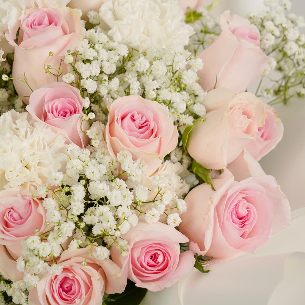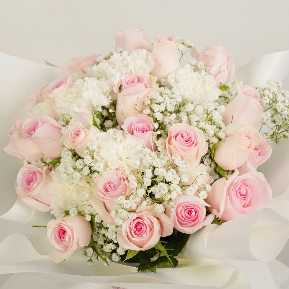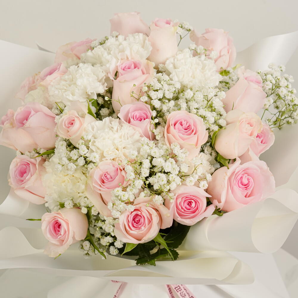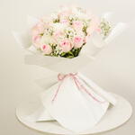 Le bouquet « Douce Fleur » est composé de 25 roses rose tendre et de 10 tiges de gypsophile blanche, élégamment enveloppées de blanc. Un cadeau gracieux qui symbolise la beauté, la tendresse et le charme intemporel.