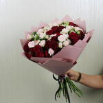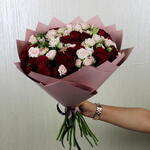 Un charmant bouquet à la main présentant un délicieux mélange de roses spray rouges et de roses spray Sweet Sara. Les fleurs rouges éclatantes symbolisent l'amour et la passion, tandis que les délicates roses Sweet Sara ajoutent une touche d'élégance et de romantisme avec leurs teintes douces et leurs pétales luxuriants. Parfaitement arrangé, ce bouquet est un cadeau idéal pour toute occasion, rayonnant de beauté, de charme et de sentiment sincère dans chaque fleur.