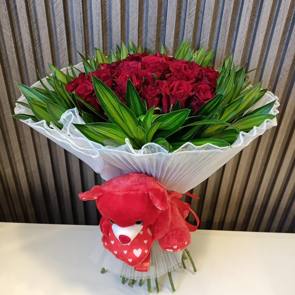 Ours en peluche - 1 pce card - 1 pce Chanson de l'Inde - 10 pce roses - 50 pce