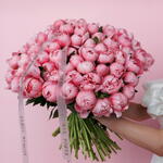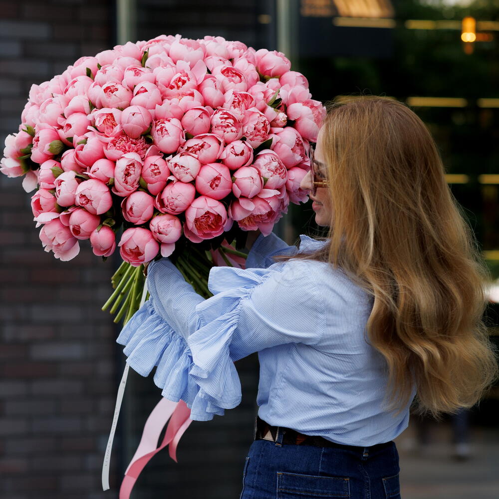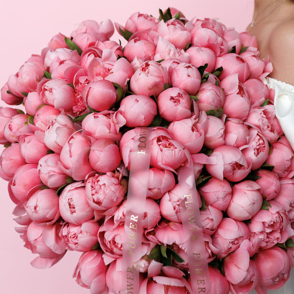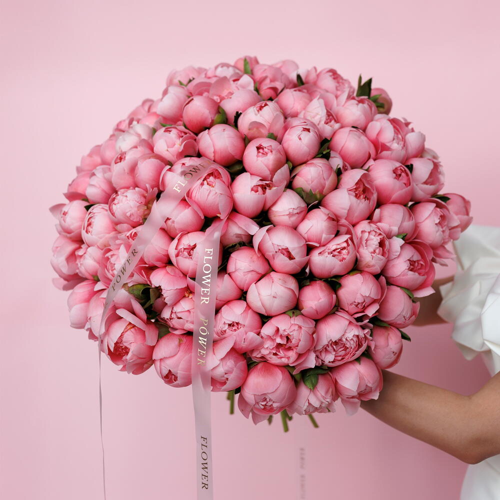 Un bouquet véritablement à couper le souffle et magnifique composé d'une centaine de pivoines luxuriantes et parfumées. Cet arrangement de taille WOW incarne la joie pure, l'opulence et une douceur inoubliable, ce qui en fait une déclaration ultime d'affection profonde et de reconnaissance. Parfait pour de grandes célébrations, des anniversaires importants, des anniversaires marquants ou simplement pour exprimer une adoration débordante et offrir une surprise extraordinaire.