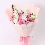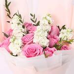 Pink rose - 10 pce matthiola blanche - 5 pce