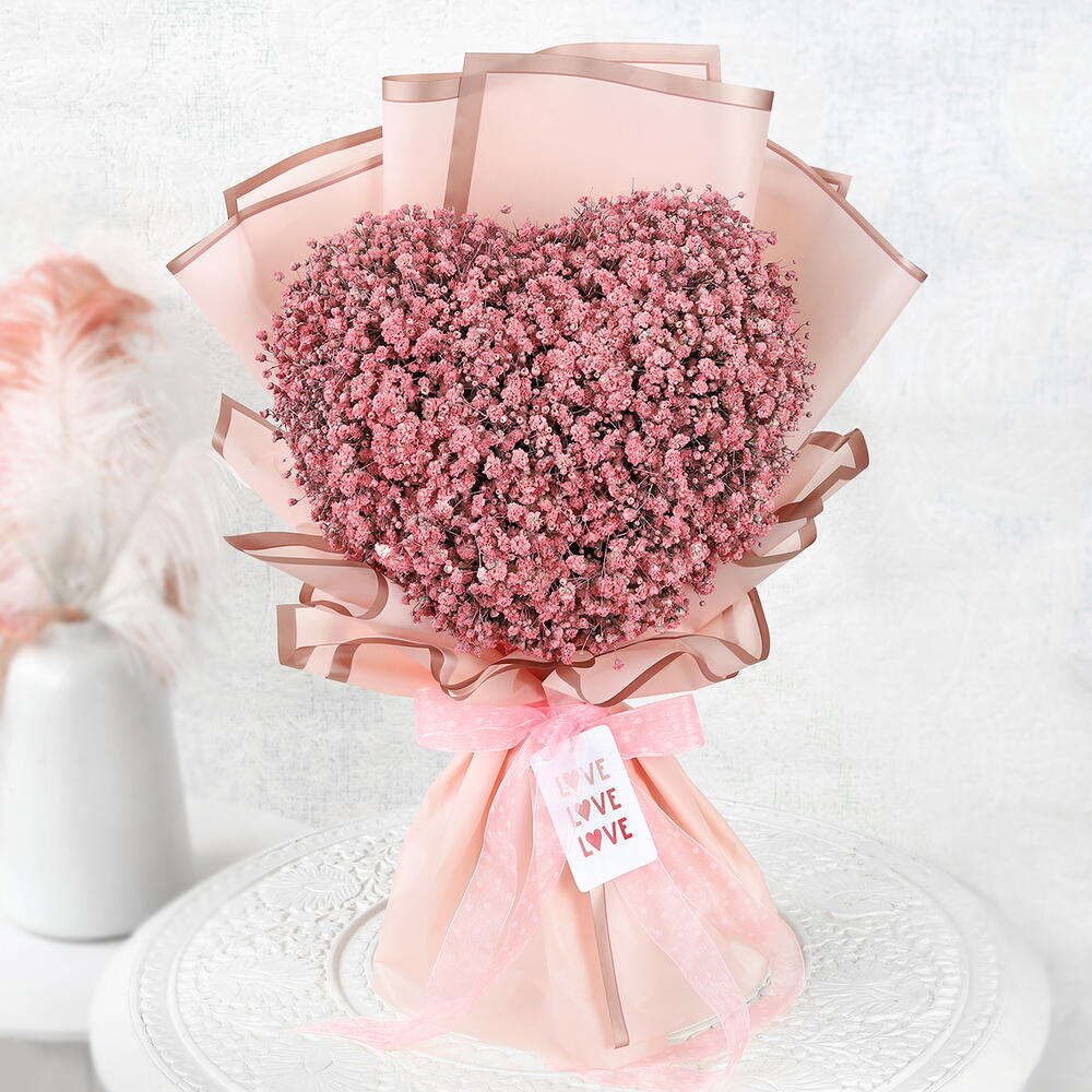 La vie est faite pour célébrer l'amour de votre vie de toutes les manières possibles, et The Blushing Symphony est une oasis en forme de cœur d'adoration. Type de fleurs: Gypsophile Couleur de la fleur: rose
