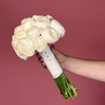 La Mariée: Un bouquet de 21 renoncules blanches enveloppé de dentelle blanche