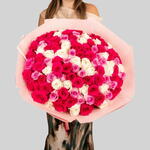 The bouquet is a harmonious symbol of love, respect, and admiration, making it an exceptional choice for various occasions. Whether celebrating a special milestone, expressing gratitude, or sharing your deepest feelings, this arrangement speaks volumes with its sophisticated design and thoughtful combination of colors.