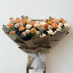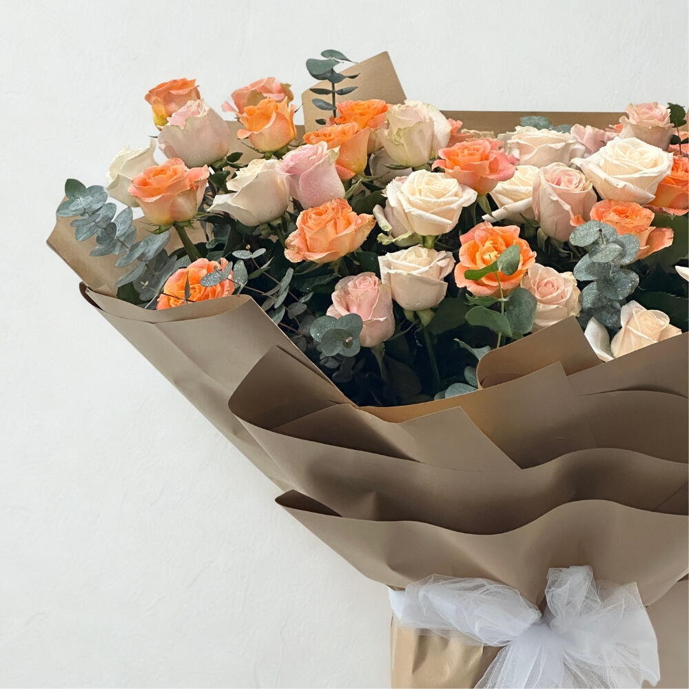 Transportez-vous dans un jardin radieux avec notre somptueux Mono Bouquet. Cette superbe composition est une célébration de la lumière et de la vie, composée de: 21 roses de jardin orange éclatantes, baignées par le soleil et symbolisant l'enthousiasme 15 ravissantes roses Vendela roses, symboles du bonheur parfait 15 roses Vendela blanches immaculées, représentant la pureté et l'innocence Ce splendide bouquet saura enchanter, en faisant un cadeau idéal ou un centre de table parfait pour toute occasion. Le mélange harmonieux de teintes vives et douces crée un chef-d'œuvre visuel à la fois élégant et saisissant. Prêt à faire entrer la beauté d'un jardin chez vous ? Commandez dès aujourd'hui ce somptueux Mono Bouquet et partagez un cadeau réellement enchanteur.
