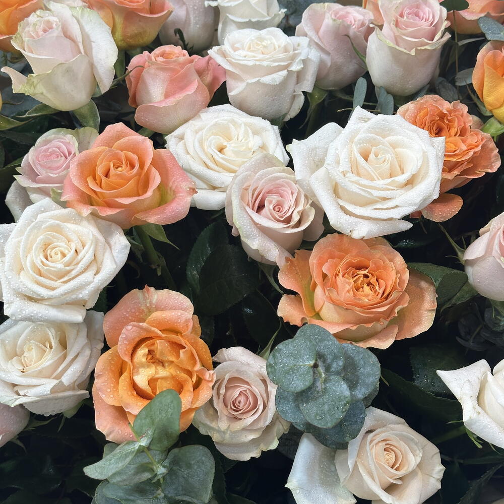 💐 Le Jardin Radieux ! Des roses orange, roses et blanches pour un bouquet à couper le souffle ! FlowerGoals TimelessBeauty