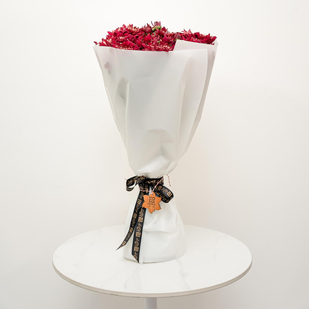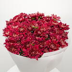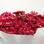 Une composition audacieuse et vibrante de chrysanthèmes rouges, cette création dégage passion et énergie. Ces fleurs flamboyantes sont sûres de faire sensation et d'ajouter une touche de drame à n'importe quel espace.
