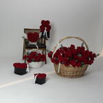 panier de fleurs avec 100 roses - 1 pce boîte en forme de cœur avec 25 roses - 1 pce petite tête avec 20 roses - 1 pce Cœur en 3D avec 100 roses spray - 1 pce grand ours en peluche avec 100 roses spray - 1 pce panier moyen avec 30 roses rouges - 1 pce