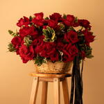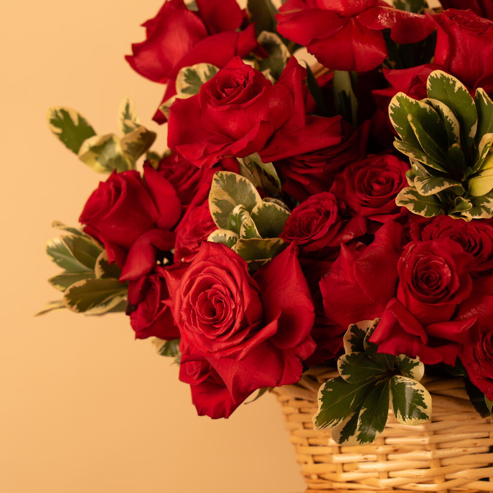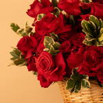 Ribbon - 4 pce feuillage - 5 pce panier marron - 1 pce roses rouges premium - 26 pce