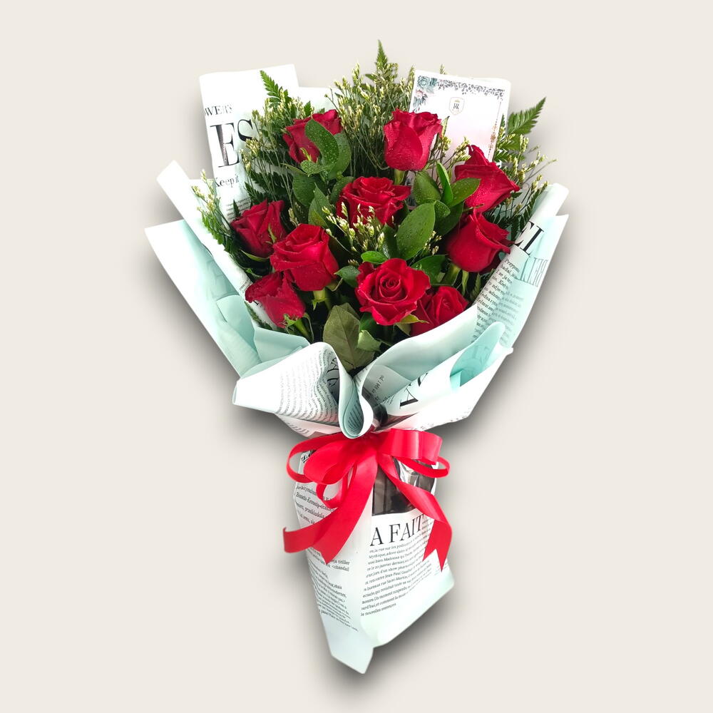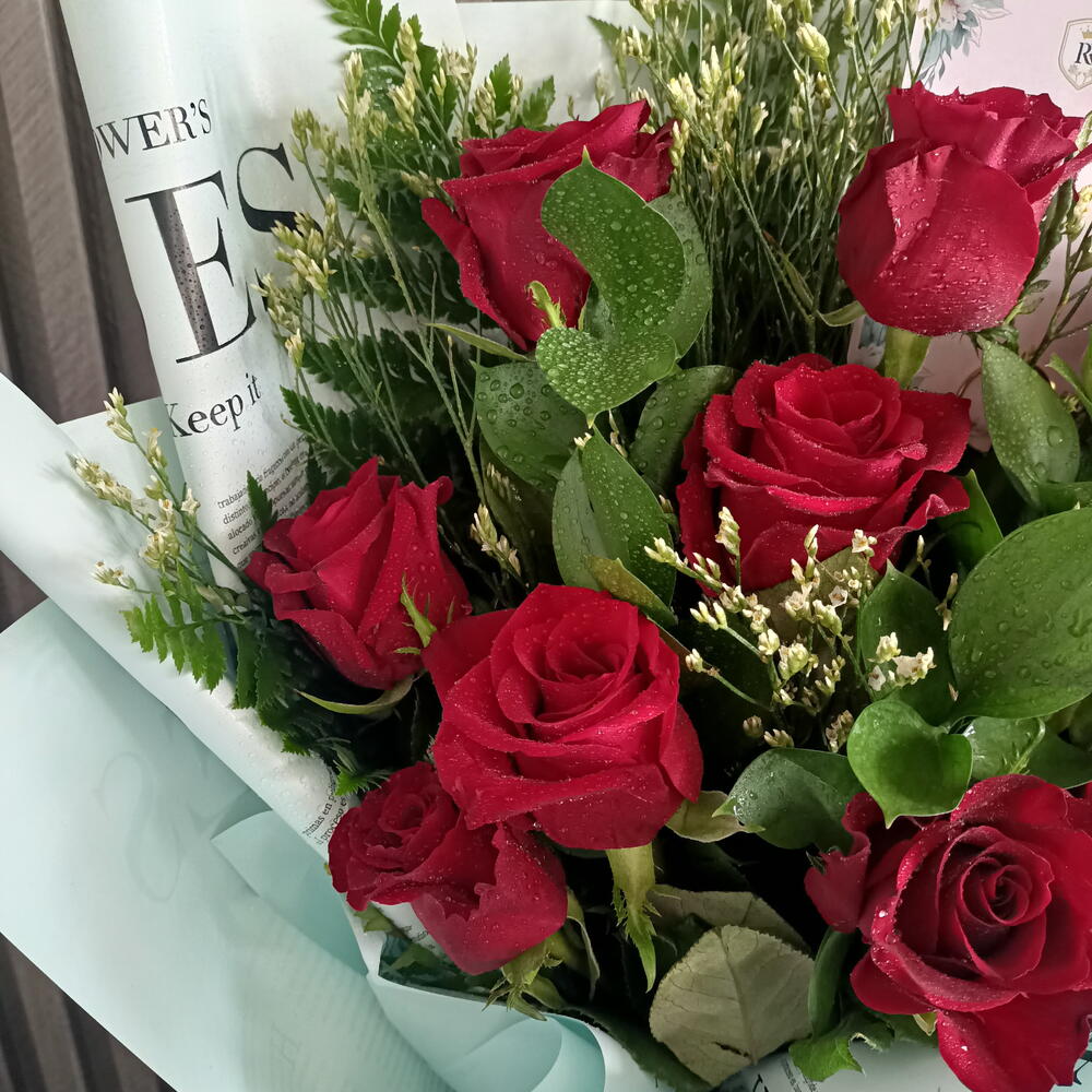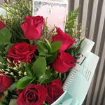 Limonium - 3 pce card - 1 pce roses - 10 pce ruscuss - 5 pce