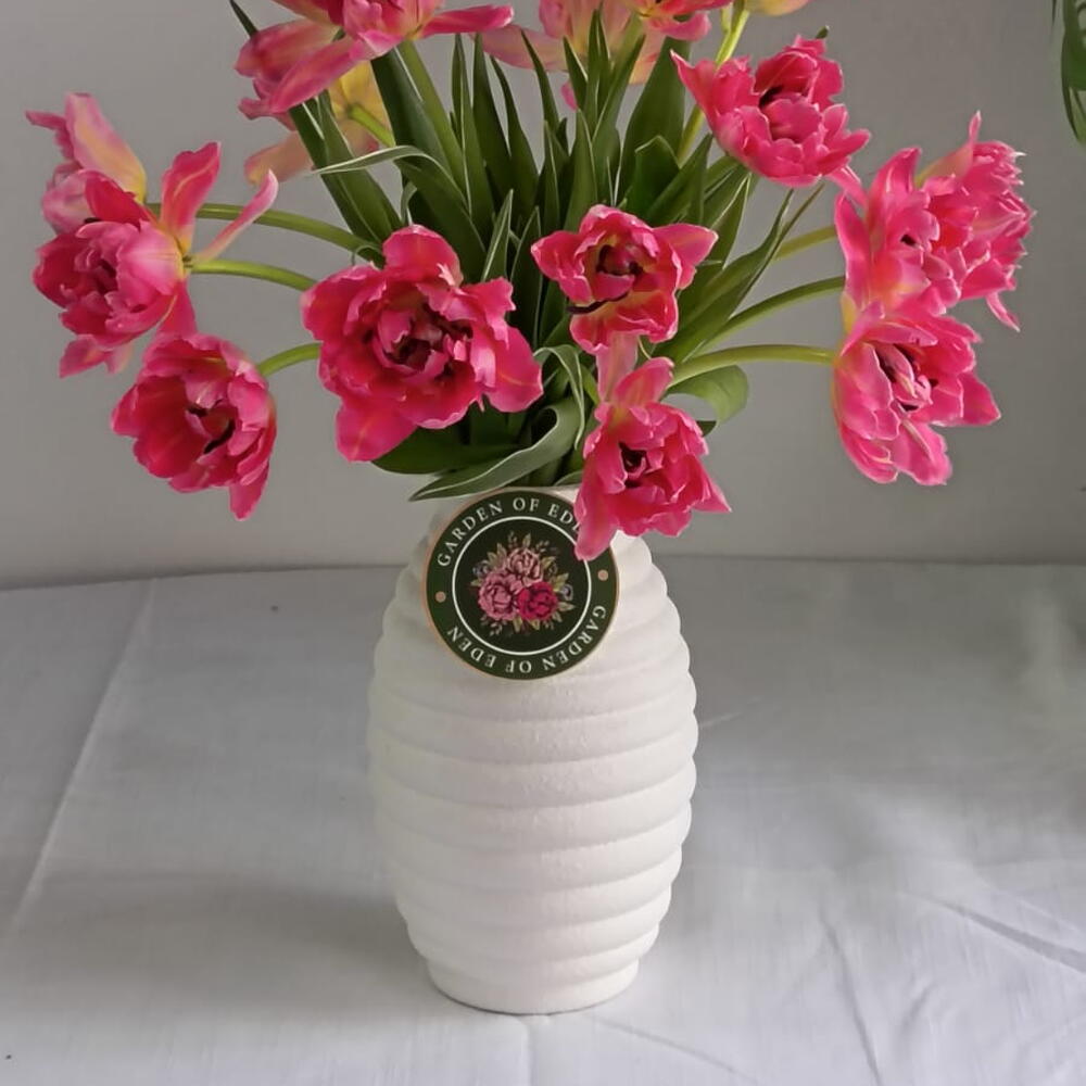 tulipe rose - 15 pce pot blanc - 1 pce