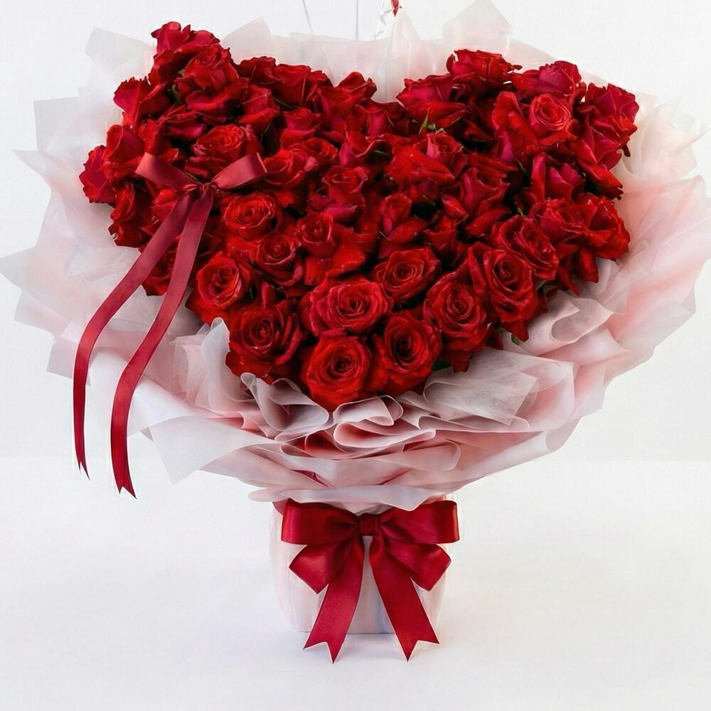 Affirmez votre amour avec ce magnifique bouquet de Saint-Valentin composé de 99 roses rouges fraîches, délicatement enveloppées dans un papier rose tendre de qualité supérieure, créant un contraste raffiné. Agrémenté de 3 ballons rouges en forme de cœur gonflés à l'hélium, cet arrangement floral est conçu pour impressionner au premier regard. Parfait pour la Saint-Valentin, les anniversaires, les demandes en mariage ou les grandes surprises romantiques, ce bouquet symbolise l'amour profond, la passion et l'engagement. Confectionné artisanalement par des fleuristes experts à partir de roses à longues tiges de première qualité, il arrive frais, éclatant et prêt à émerveiller. Idéal pour : Saint-Valentin 💘 | Demandes en mariage 💍 | Anniversaires | Cadeaux romantiques de luxe