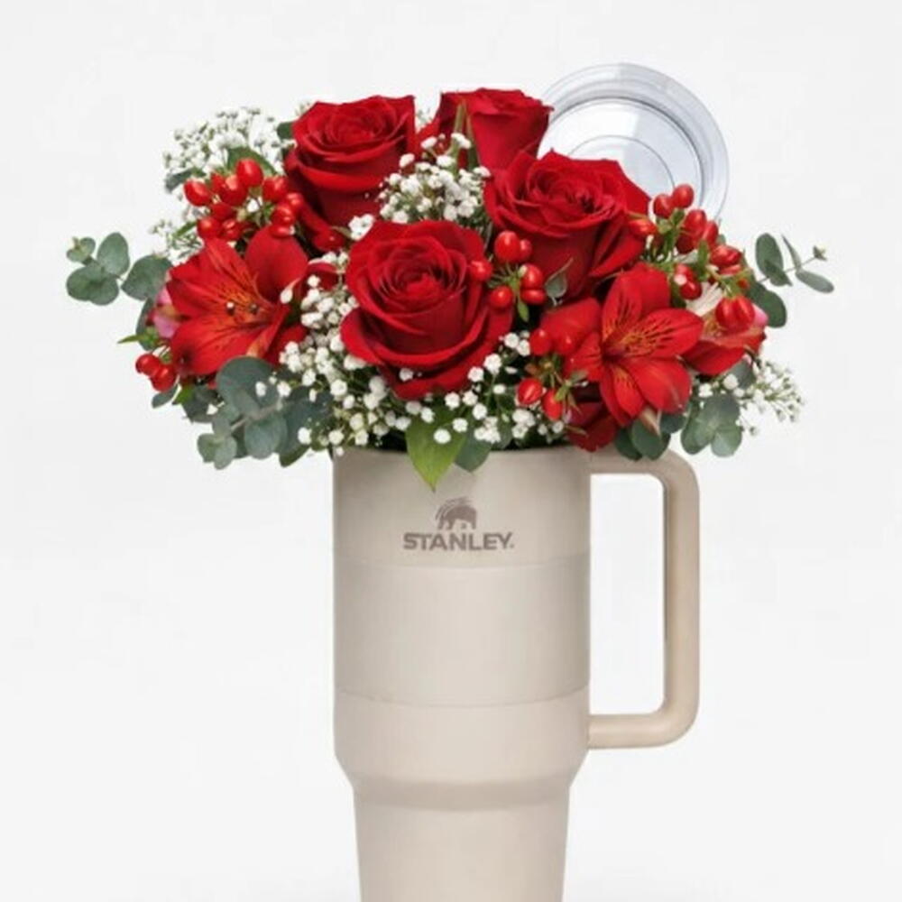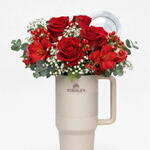 Transformez votre gourde préférée en un cadeau romantique ! Que vous cherchiez le cadeau idéal pour un(e) fan de Stanley ou que vous souhaitiez simplement embellir votre bureau, cette composition artisanale de roses rouges et d'eucalyptus de qualité supérieure se glisse parfaitement dans une gourde Stanley Quencher H2.0 de 1,2 L. Un cadeau deux-en-un qui fait plaisir longtemps : un magnifique bouquet de fleurs fraîches pour la Saint-Valentin et une gourde Stanley de qualité pour garder les boissons glacées bien après la floraison. Parfait pour le bureau de votre meilleure amie ou une surprise inoubliable pour votre partenaire, ce coffret apporte une touche spéciale Saint-Valentin à la gourde qu'elle adore emporter partout.