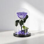 tige courte préservée - 1 pce rose préservée violette XXL dans un dôme en verre de 26 cm et emballée dans une jolie boîte à roses - 1 pce