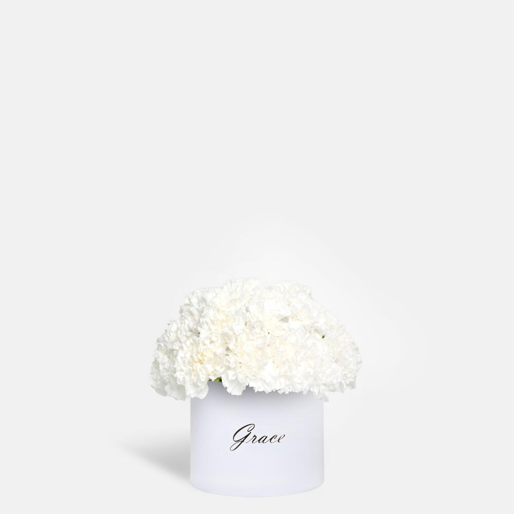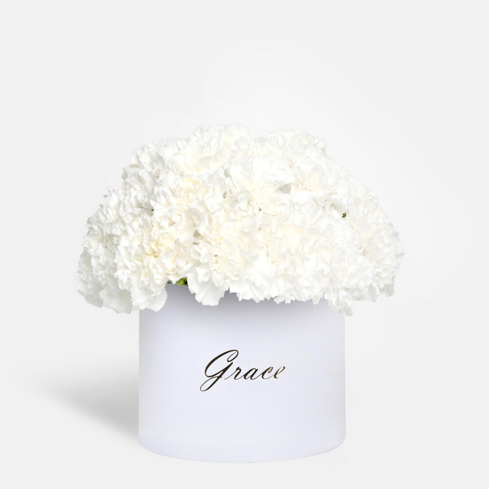 Délicatement disposés dans une élégante boîte, ces œillets blancs immaculés symbolisent l'amour pur, le souvenir et l'admiration—parfaits pour exprimer des émotions sincères lors de toute occasion spéciale ou pour un geste attentionné.