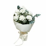 Un arrangement raffiné centré autour d'œillets blancs de qualité supérieure, réputés pour leurs pétales pleins et froncés et leur fraîcheur durable. Associé à des fleurs complémentaires et à un feuillage frais, ce bouquet épouse la simplicité avec une confiance discrète. Les œillets blancs symbolisent la pureté, la loyauté et l'amour durable — faisant de ce bouquet un choix idéal pour les occasions sincères, les gestes élégants et les ambiances intemporelles. Doux en ton. Puissant en présence. La preuve que les fleurs classiques ne se démodent jamais.