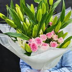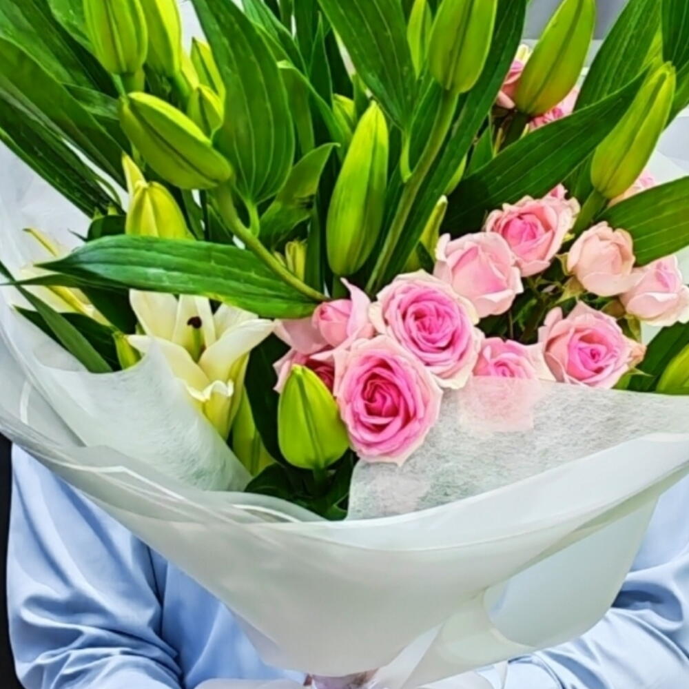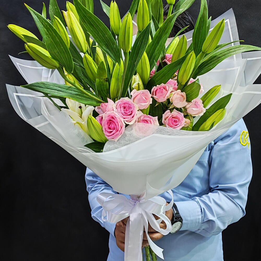 Ribbon - 1 pce lilly - 7 pce wrapping paper - 5 pce roses de buisson - 3 pce