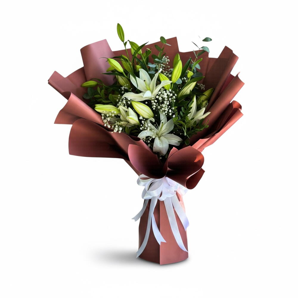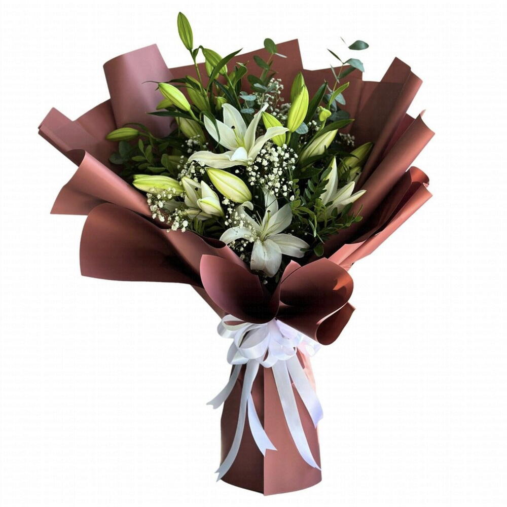 Eucalyptus - 1 pce wrapping paper - 2 pce white lily - 5 pce