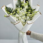 Bouquet de 10 tiges d'orchidées dendrobium blanches dans un bel emballage